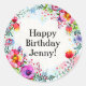 Pegatina Redonda Flor color de agua brillante cumpleaños