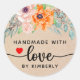 Pegatina Redonda Flor de amapola hecha a mano con amor Classic Roun