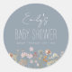 Pegatina Redonda Flor De Flor Azul Dusto En Bloom Baby Shower