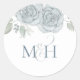 Este diseño presenta un minimalista monograma sencillo azul polvoriento, un diseño de calcomanías pegatina azul, un elegante estilo clásico moderno, sencillo, boda, iniciales de novios, excelente para el verano de primavera, flores rosas florales, azul polvoriento, un sencillo mínimo minimalista, una elegante moda personalizado, elegantes etiquetas creativas y elegantes, un estilo de diseño monogramado