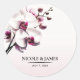 Pegatina Redonda Flor de Orquídea Rosa y Blanca Boda