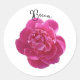 Pegatina Redonda Flor de Peón Rosa vibrante personalizada