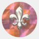 Pegatina Redonda Flor de plata de liras sobre Naranja geométrico y