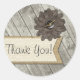 Pegatina Redonda Flor de tela de madera rústica con botón de arpill