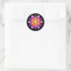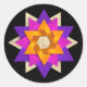 Pegatina Redonda Flor Estrella Púrpura Rosa Naranja Negro
