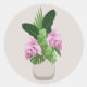 Pegatina Redonda Flor rosa de Medinilla Tropical en Base Beige