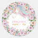 Pegatina Redonda Flor rosa de unicornio mágico, primer cumpleaños