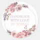 Pegatina Redonda Flor rosa hecha a mano con amor