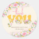 Pegatina Redonda Flor salvaje de mostaza y rosa gracias