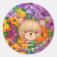 Pegatina Redonda Flor Teddy Bear Pink Gracias