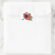 Pegatina Redonda Flor tropical roja hibiscus con hojas verdes