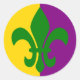 Símbolo sólido y verde de flor de lis contra fondo dorado y violeta. Púrpura (justicia), verde (fe) y oro (poder) son los colores del Mardi Gras.