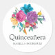 Pegatina Redonda Floral acuática Fiesta Quinceañera