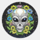 Pegatina Redonda Floral Alien Skull Arte AI extraterritorial