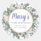Pegatina Redonda Floral blanca azul 70 cumpleaños Gracias