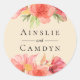Hermosas flores de acuarela suaves y follaje en rojo, naranja y melocotón sobre fondo de champán, etiqueta personalizada. Diseñado para combinar con nuestra colección Wispy Watercolor.