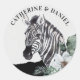 Pegatina Redonda Floral de color de agua Cebra salvaje Safari nombr