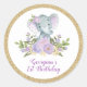Pegatina Redonda Floral de oro Purple Elephant Lavender