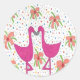 Impresión floral divertida con flamencos rosas y puntos de polka.