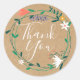 Esta moda botánica de agradecimiento pegatina presenta una moderna guirnalda floral de flores primaverales enmarcando un guión blanco de moda gracias en un rústico fondo kraft. Perfecto para bodas, duchas de novias, duchas para bebés, bautizos, fiestas de compromiso, celebraciones de aniversario, graduaciones, encuentros de cumpleaños y otros eventos especiales a lo largo del año. Diseñado por Thisisnotme©