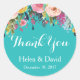 Flor Floral Rosa Gracias Pegatinas De Boda Favor. Fondo verde azulado Turquesa Acuático. Personalizar con sus nombres y fecha.