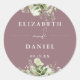 Elegante pegatina mauve florido de vegetación personalizada con sus nombres y fecha especial. Diseñado por Thisisnotme©