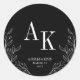 Pegatina Redonda Floral Line Art Rustic Black Elegant Wedding Name