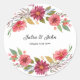 Pegatina Redonda Floral marsala acuática y rosa oscuro clásico
