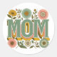 Pegatina Redonda Floral MOM Retro Typography – Mother's Day Shirt