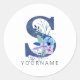 Pegatina Redonda Floral Monograma S Flores Azules De Invierno