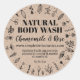 Esta etiqueta natural, simple de color vivo para un simple lavado de cuerpo casero natural es para el embalaje exterior de sus productos. El diseño consiste en un borde floral sobre una imagen de papel kraft.