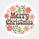 Pegatina Redonda Floral Red and Green Merry Christmas Envelope Seal