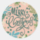 Pegatina Redonda Floral rosa alegre Navidad