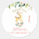 Floral rosa Oh ciervo Primer cumpleaños Pegatina redondo clásico