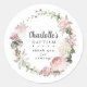 Pegatina Redonda Floral Rosa Rústico Bautizo Agradecimiento