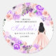 Pegatina Redonda Floral rosa y morada Quinceanera Classic Round Sti