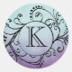 Pegatina Redonda Florecimiento rústico Verde azulado y morado bohem