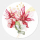 Pegatina Redonda Flores acuáticas de poinsettia roja feriado de inv