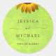 Pegatina Redonda Flores amarillas sobre el Boda Verde abstracto