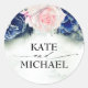 Pegatina Redonda Flores azul y rosa de la marina elegante moderna