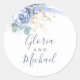 Pegatina Redonda Flores azules turbias y vegetación dorada