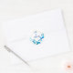 Pegatina Redonda flores azules y hojas en un rhombus dorado