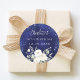 Pegatina Redonda Flores blancas azules de la marina de cumpleaños