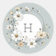 Pegatina Redonda Flores Boho de Monograma Verde Salvia Personalizad