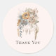 Gracias pegatinas con un ramo de flores de bonito en colores neutros de marrón, melocotón y naranja. Un soñador con plumas añade un elegante toque místico.