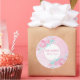 Flores rosadas personalizables y hojas azules Pegatina de bienvenida al bebé con fondo rosa. Perfecto para sellos de sobres, sellos de bolsas de favores, para agregar a paquetes y mucho más.