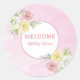 Pegatina Redonda Flores de acuarela rosadas personalizables Bienven