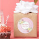 Pegatina personalizable de flores de acuarela rosadas, blancas y amarillas de bienvenida para bebé con fondo rosa. Perfecta para sellos de sobres, sellos de bolsas de favores, para agregar a paquetes y mucho más.