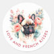 Pegatina Redonda Flores de Bulldog francesas aman y besan a Francia
