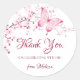 El cerezo rosa bonito florece una hermosa mariposa rosada y gracias palabra en un elegante guión caligráfico. Este pegatina coincide con mi pequeña papelería de ducha de mariposa. Personalizar con tu nombre.